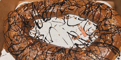 The King Cake has Bavarian inside along with cinnamon and sugar. And Chocolate, caramel and pecans on the outside.